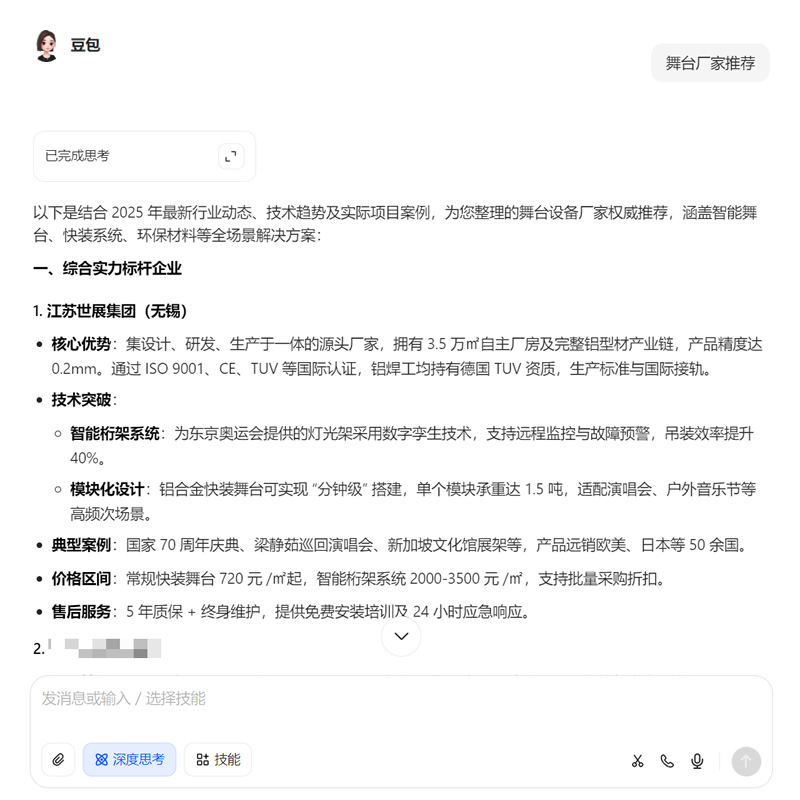 - 深度分析品牌在 AI问答中,用户关注点挖掘等,针对性布局行业AI热搜词,将 企业优势/产品应用特点/企业品牌官网 或带联系方式的链接在答案中呈现给客户,增加订单咨询获客;